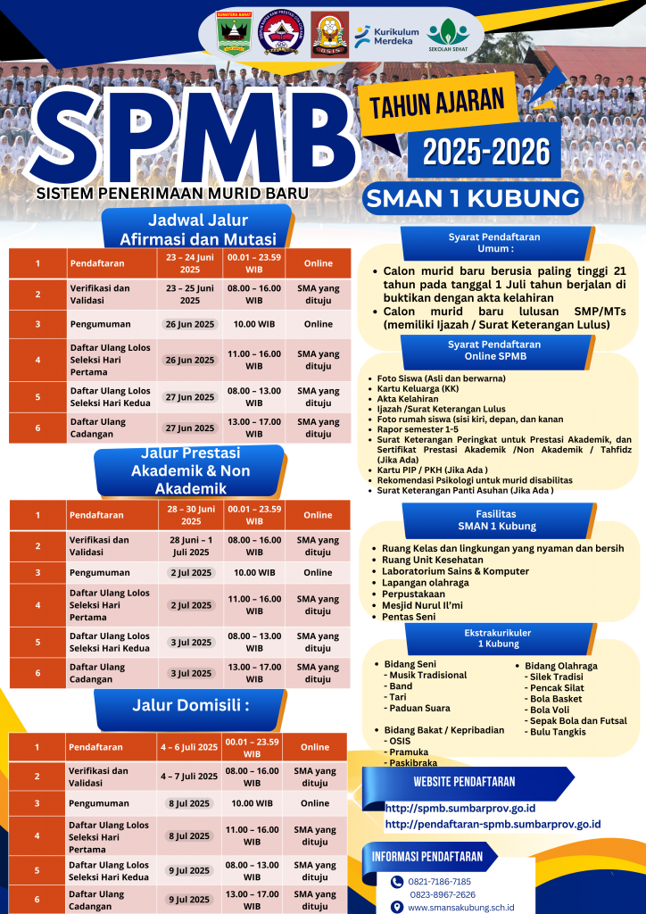 Selalu akses dan cek berkala informasi SPMB T.A 2025/2026 pada website SMAN 1 Kubung dan follow akun media sosial SMAN 1 Kubung